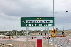 Port of Brisbane Motorway is a motorway which connects the Port of Brisbane to the Gateway Motorway. Stage 1 was opened in December 2002. The motorway was built to take freight traffic off Lytton Road, with about 4,000 vehicles travelling to the Port of Brisbane in 2002.[1] Stage 1 cost A$196 million and was finished six months ahead of schedule and A$20 million under budget.[2] The Port of Brisbane Motorway holds the M4 motorway designation.