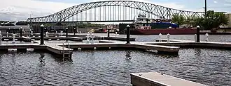 The Port of Dubuque Marina is located in the historic Ice Harbor of Dubuque, Iowa. The entrance to the Port of Dubuque Marina is located on mile 597.4 on the Upper Mississippi River. The entrance to the harbor is through the flood control gates of the Senator flood wall which was constructed in 1969. This makes the Port of Dubuque Marina well protected from the current of the Mississippi. During high river levels the flood gates are closed, and boat traffic into and out of the Ice Harbor stops.
