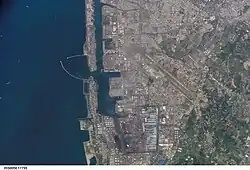 The Port of Kaohsiung (POK; Chinese: 高雄港; pinyin: Gāoxióng Gǎng; Wade–Giles: Kao1-hsiung2 Kang3; Pe̍h-ōe-jī: Ko-hiông-káng) is the largest harbor in Taiwan, handling approximately 10.26 million twenty-foot equivalent units (TEU) worth of cargo in 2015.[1] The port is located in southern Taiwan, adjacent to Kaohsiung City, and surrounded by the city districts of Gushan, Yancheng, Lingya, Cianjhen, Siaogang, as well as Cijin. It is operated by Taiwan International Ports Corporation, Taiwan's state-owned harbor management company.[2]