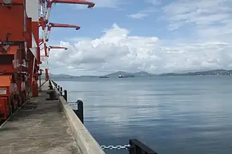 The port has a total of 12 piers and wharves and presently has three container terminals, a fertilizer terminal at the Boton Wharf, a grain bulk terminal at the Leyte Wharf, and a general containerized cargo terminal at the Sattler Pier.[3] A new container terminal with two berths is now being constructed through the Subic Bay Port Development Project (SBPDP). The two new berths has a total capacity of 300,000 TEUs each, large enough accommodate Panamax and post-Panamax container vessels.[4]