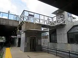 The elevator to the Red Line platforms was out of service for construction from March 21, 2011, to June 22, 2012; an accessible shuttle bus ran between Porter and Davis.[24][29] The elevator to the commuter rail platform was also taken out of service from December 9, 2011, to July 2012; a shuttle bus ran between Harvard, Porter, and Waltham.[31] An elevator from Massachusetts Avenue to the lobby opened later that year, followed by an overhaul of the existing street elevator; the redundant Red Line platform elevator was completed in 2013.[29]