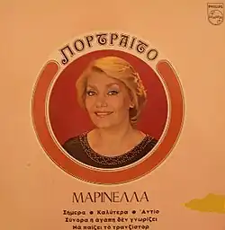 Marinella – Portreto (Greek: Μαρινέλλα – Πορτραίτο; Marinella – Portrait) is a compilation of recordings by popular Greek singer Marinella, under the PolyGram Records – Philips series "Portreto (Portrait)". This album is part of the compilation. It was released in 1980 in Greece[1][2] and includes 14 recordings by Marinella from 1974 to 1979 for the PolyGram Records.[3][4]