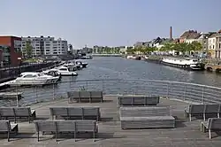 Portus Ganda is one of the yacht moorings provided by the city of Ghent in East Flanders, Belgium. Located at Veerkaai 2 at a crossing in the old waterways of the river Leie, it opened in 2005 to create a destination for people touring the Flemish waterways by boat. The harbour master's office is located next to the new entrance of the Van Eyck swimming pool that faces the Veermanplein. (The pool's original entrance on the Julius de Vingeplein is now a staff-only entrance)