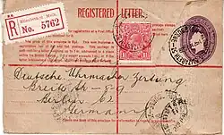 Postal stationery was first issued by the Commonwealth of Australia in April 1911.[9] Postcards based on the design of South Australia 1893 postcards and a "Stamp" design of a full face of King George V, engraved by Samuel Reading, were issued in April 1911.[9] Letter Cards with the same "Stamp" design were also issued. Envelopes, Registered envelopes and Newspaper wrappers were first issued in 1913, using the "Kangaroo on Map" "Stamp" design by Blamire Young.[9] Aerogrammes were first issued in 1944.