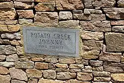 Potato Creek Johnny died on February 26, 1943,[9] at the age of about 77,[10] after a two-week illness. His funeral procession on March 3 passed by the Adams Museum, and a bell tolled 77 years, once for each year of his life.[1] He is buried next to Wild Bill Hickok and Calamity Jane in Mount Moriah Cemetery in Deadwood.[9][11]