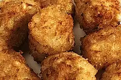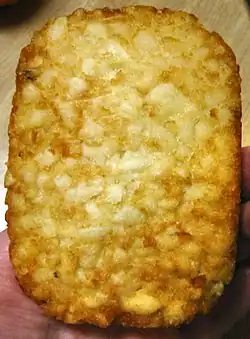 | Tater Tots | | United States | Potato pieces formed into small cylinders and deep fried (similar to hash brown). |