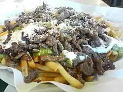 | Carne asada fries | | Southwestern United States | Typically consists of french fries, carne asada, guacamole, sour cream and cheese.[6] |