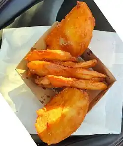 | Bengal potatoes | India | Potatoes that are baked with spices, peppers and curry, and then battered and deep fried. | |