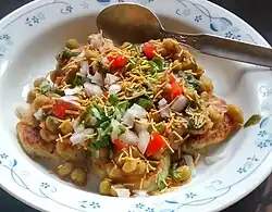 | Dabeli | | Kachchh, India | A snack food of India, originating in the Kutch or Kachchh region of Gujarat. It is a spicy snack made by mixing boiled potatoes with a dabeli masala, and putting the mixture between pav (burger bun) and served with chutneys made from tamarind, date, garlic, red chilies, etc. |