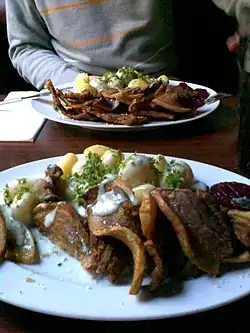 | Rösti | | Switzerland | Consists primarily of grated potatoes, and a number of additional ingredients are sometimes added. |