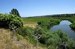 The 30-mile (48 km) long North Fork - Linnville Creek tributary begins 5 miles (8.0 km) southeast of the town of Davis Creek, near Goose Lake. It flows generally south-southwest, joining the South Fork from the north near Alturas.[11][12] Although Goose Lake is generally considered the terminal sink of an endorheic basin, it will overflow into the Pit River during floods; however this has not occurred since 1881 due to large diversions of water for agriculture.[13]