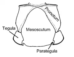 - a posterolateral projection known as a parategula on both sides of the mesoscutum;