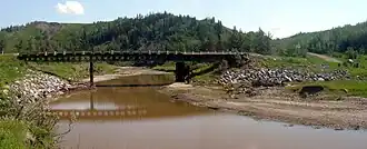 The river then turns northwest to the village of Pouce Coupe. The Pouce Coupe Regional Park is established on the banks of the river east of the village and Highway2, at the confluence with Bissette Creek.[2]