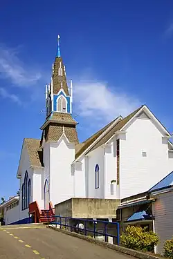 First Lutheran Church opened in 1886 atop the hill, overlooking downtown Poulsbo, and was originally Førdefjord Lutheran.[28]