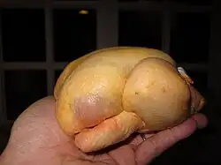 In the United States, poussin is an alternative name for a small-sized cross-breed chicken called Rock Cornish game hen, developed in the late 1950s, which is twice as old and twice as large as the typical British poussin.