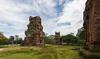 Prasat Suor Prat (Khmer: ប្រាសាទសួព្រ័ត) is a series of twelve towers spanning north to south lining the eastern side of a royal square in Angkor Thom, near the town of Siem Reap, Cambodia. The towers are made from rugged laterite and sandstone. They are right in front of Terrace of the Elephants and Terrace of the Leper King, flanking the start of the road leading east to the Victory Gate, on either side of which they are symmetrically arranged. Their function remains unknown.[1]