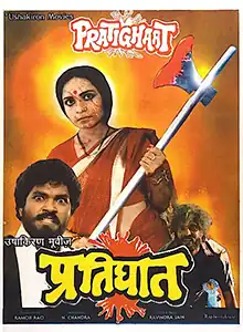 Pratighaat (transl. The Revenge) is a 1987 Hindi feminist drama film directed by N. Chandra, starring Sujata Mehta in the lead.[1] It is a remake of the Telugu film Pratighatana (1985), directed by T. Krishna, with Vijayshanti in the lead.[2]