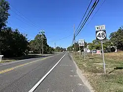 Route 48 is an east–west state highway in Salem County in the U.S. state of New Jersey. It is a 4.26-mile (6.86 km) route running from U.S. Route 130 (US 130) and County Route 675 (CR 675) in Penns Grove southeast to US 40 in Carneys Point Township. It is known as East Main Street from US 130 to DuPont Road, and as the Harding Highway from DuPont Road to its terminus at US 40. Route 48 is signed east–west, although it travels more northwest–southeast throughout its route. It is a two-lane, undivided road through its entire length that intersects with Interstate 295 (I-295) and CR 551.