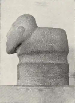 The oldest dates in the South are attributed to the "Ibicuí tradition" (between 13,000 and 8,500 years old), composed of simple artifacts found in the Uruguay Basin.[1][2] The Uruguay phase, which succeeds the first chronologically, dates from 11,555 to 8,640 BP and is composed of scrapers, bifacial blades, and projectile points.[30] In Santa Catarina and Rio Grande do Sul, artifacts (knives, scrapers, arrowheads) from 8,500 to 6,500 years ago have been located, established as the "Vinitu tradition". The more recent "Humaitá tradition" (between 6,500 and 2,000 years ago) extends from São Paulo to Rio Grande do Sul.[2][24] People of this tradition produced scrapers, awls, and even zooliths (stone statues in the shape of animals). Another tradition identified in the south was called "Umbu"; this one would have been responsible for making stoves and projectile points.[1][19][31]