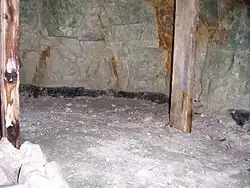 Grimes GravesView of a seam of Flint in the Grimes Graves excavation. The pit props are modern supports added when the site was excavated is a large Neolithic flint mining complex near Brandon close to the border between Norfolk and Suffolk .A recent survey by English Heritage found that Grimes Graves was one of only ten Neolithic flint mines known in England, of which only six survive as earthworks. Dating from roughly 3000–2000 BC, mining began at the site during the later Neolithic and continued for a while into the Bronze Age. The Anglo-Saxons believed the site was the work of the god Grim – (possibly a euphemism for Woden,) -the place-name means 'Grim's quarries'. The available radiocarbon dates suggest that mining may have taken place over a period of between 500 and 1,000 years. It extends over an area of around 37 ha (0.37 km2 / 96 acres) and consists of at least 433 shafts dug into the natural chalk to reach seams of flint. The deepest shafts are more than 12 m (40 feet) deep and the widest is around 18 m (60 ft,) in diameter at the surface. It has been calculated that more than 2,000 tonnes of chalk had to be removed from the larger shafts, taking 20 people around five or six months, before stone of sufficient quality was reached. An upper, (topstone,) and middle (wallstone,) seam of flint was dug through on the way to the deeper third seam (floorstone,) which most interested the miners. The mines were sunk at a rate of one every one or two years. Although recent research has suggested that small groups of mines may have been dug simultaneously. Mining was however neither intensive, nor on an 'industrial' scale, as we understand the term today. The geology at Grimes Graves comprises a number of flint layers lying below sands and clays and interspersed between chalk. It was the upper three seams of flint which were exploited, and the lowest of the three, known as 'floorstone', was generally targeted because it was in larger tabular nodules, it was easily flaked, less flawed than flint from the other layers, and had a lustrous deep black colour. To get to the flint the Neolithic miners dug shafts up to 12 m deep with radiating galleries at their base, as well as shallower pits from 3 m to 8 m deep. Some mines are grouped together with two or three in a single quarry, implying that some were dug in sequence.