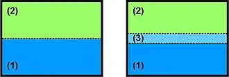 The first (1) and the second (2) phase are always divided by some form of interface, what results in an interfacial energy . One can now ask whether this energy can be lowered by inserting a third phase (l) in between (1) and (2). Written in interfacial energies this would mean: