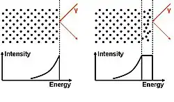 There are several techniques to prove the existence of a liquid layer on a well-ordered surface. Basically it is all about showing that there is a phase on top of the solid which has hardly any order (quasi-liquid, see fig. order parameter). One possibility was done by Frenken and van der Veen using proton scattering on a lead (Pb) single crystal (110) surface. First the surface was atomically cleaned in [UHV], because one obviously has to have a very well ordered surface for such experiments. Then they did proton shadowing and blocking measurements. An ideal shadowing and blocking measurements results in an energy spectrum of the scattered protons that shows only a peak for the first surface layer and nothing else. Due to the non ideality of the experiment the spectrum also shows effects of the underlying layers. That means the spectrum is not one well defined peak but has a tail to lower energies due to protons scattered on deeper layers which results in losing energies because of stopping. This is different for a liquid film on the surface: This film does hardly (to the meaning of hardly see Landau theory) have any order. So the effects of shadowing and blocking vanish what means all the liquid film contributes the same amount of scattered electrons to the signal. Therefore, the peak does not only have a tail, but also becomes broadened. During their measurements Frenken and van der Veen raised the temperature to the melting point and hence could show that with increasing temperature a disordered film formed on the surface in equilibrium with a still well ordered Pb crystal.[7]