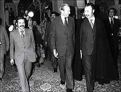 He also served as president of the United Nations General Assembly in 1974 and of the seventh special session in 1975,[1] becoming the youngest person to have done so.[14] Algeria at this time was a leader of the Non-Aligned Nations Movement.[15] He had discussions there with Henry Kissinger in the first talks between the United States and Algerian officials since the resumption of diplomatic relations between the two countries.[16]