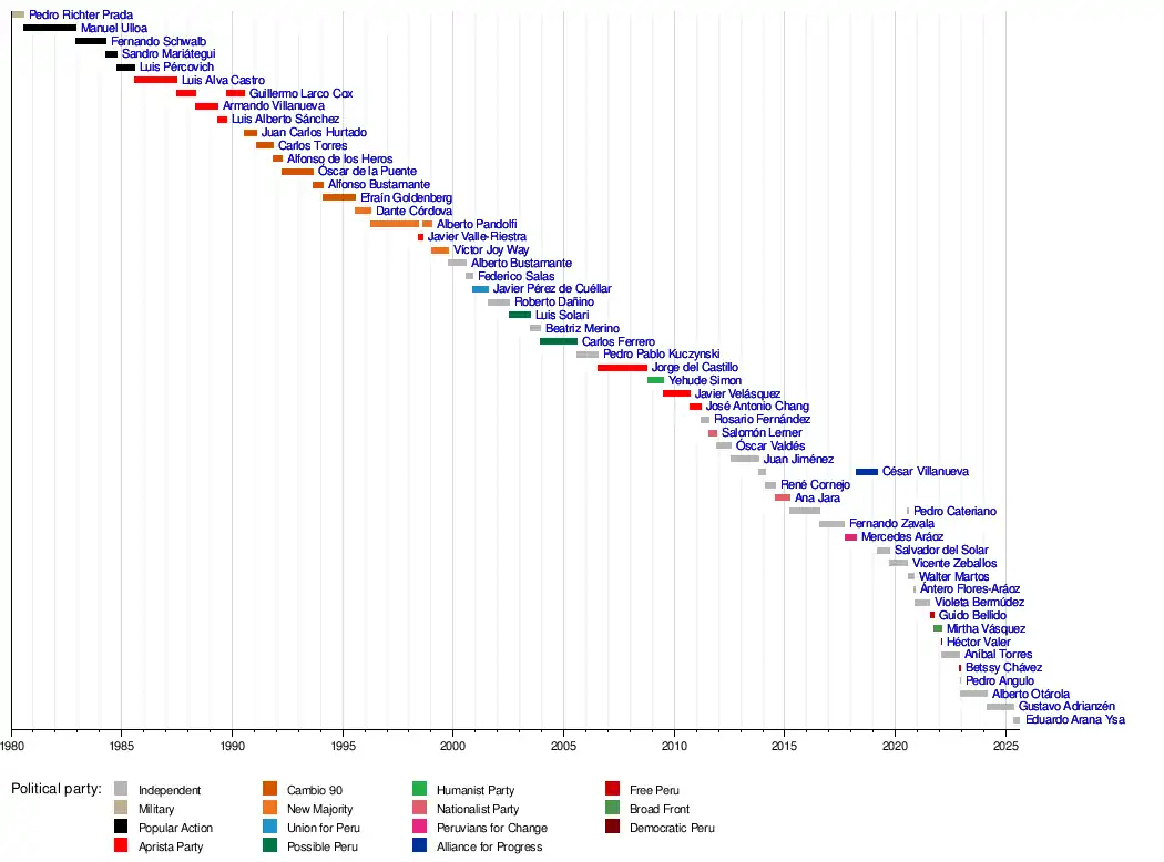 - ^ Gestión, Redacción (14 May 2025). "Eduardo Arana fue nombrado nuevo presidente del Consejo de Ministros". Gestión (in Spanish). Retrieved 14 May 2025.