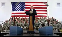 The Falcon lectern featuring the seal of the president of the United States in 2006 -