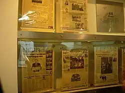The Presseum (Korean신문 박물관) is the only newspaper museum of South Korea, situated on Sejongno, in Jongno District, central of Seoul. The museum was established and is operated by The Dong-A Ilbo, one of the four major newspaper companies of South Korea. Presseum is a compound word to denote "press" and "museum" which represents its character as a newspaper museum.[1] Presseum is located on the third and fourth floors of the Dong-a Media Center and consists of three exhibition rooms; "Newspaper Hall", "Special Exhibition Hall" and "Media Education Hall".[2][3]