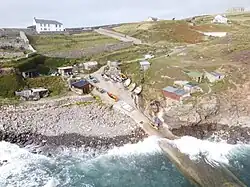 The cove lies next to Cape Cornwall which was also linked to St Just, being called Kilgoodh Ust, meaning goose-back of St Just, in the Cornish language.[3] The cove and surrounding area are designated as part of the Aire Point To Carrick Du Site of Special Scientific Interest (SSSI).[4] The South West Coast Path, which follows the coast of south west England from Somerset to Dorset passes by on the cliffs above the cove.