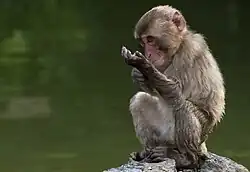 - ^ Huffman, Michael A.; Quiatt, Duane (1986). "Stone handling by Japanese macaques (Macaca fuscata): Implications for tool use of stone". Primates. 27 (4): 413–423. doi:10.1007/BF02381887. ISSN 1610-7365. S2CID 25426387.
