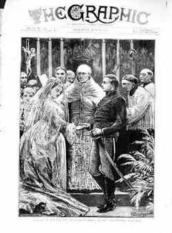 He married firstly in London on 27 June 1872 Marie Fox, adopted daughter of Henry Edward Fox, 4th Baron Holland and wife Lady Mary Augusta Coventry, and had issue, four daughters. Marie died in 1878, aged 28.[a][3] She was buried in the Kirchhof, Hollenegg, Austria. His family initially refused to approve the union on the grounds of inequality of birth, but later treated the marriage as equal, while the princess was largely accepted in Vienna.[4][5] They had four daughters:[6]