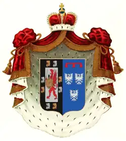 - ^ Karl Emich's marriage to Countess Isabelle von und zu Egloffstein is considered dynastic according to the rules of the House of Leiningen, as it is only required that their spouses should belong to an old noble family for the union to be deemed equal. However, the Pauline laws are more strict in that regard, and require that the spouse of a Russian Prince of the Blood should belong to a Sovereign House. Therefore, the marriage is considered morganatic according to Russian tradition, and their son cannot inherit his father's claims. Prince Emich Albrecht , however, is an undisputed dynast of the House of Leiningen, albeit not possessing succession rights, since his father was deprived of them in the 1990s.