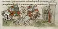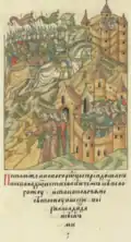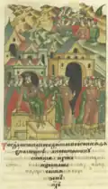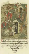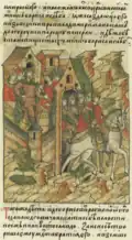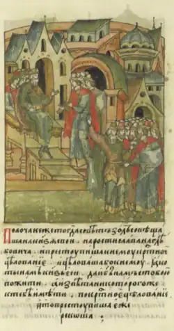 Rogvold, a non-Rurikid Varangian, was the first Prince of Polotsk. When Vladimir the Great returned from exile in Scandinavia in 980 to try to claim the Kievan throne that his brother, Yaropolk, held, he sought an alliance with Rogvolod through a marriage with his daughter, Rogneda. When she refused, calling Vladimir the "son of a slave," he attacked Polotsk, killed Rogvold and his son, and took Rogneda by force to be his wife.[1] Polotsk was then granted to Vladimir's son, Izyaslav, around the time of Christianization (988), and when Izyaslav predeceased his father in 1001, the throne of Polotsk was passed on to Izyaslav's son, Briacheslav, and the Polotsk line (the senior branch of Vladimir's sons) became izgoi and was not legally allowed to succeed to the Kievan throne,[2] although Bryacheslav's son, Vseslav, held briefly the Kievan throne in 1068–1069, after it was granted to him by the veche following the Kiev Uprising.[3]