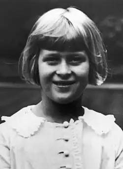 The fourth daughter of Prince Andrew of Greece and Denmark and Princess Alice of Battenberg, Sophie was born on 26 June 1914 at Mon Repos,[1][2][3] a palace in Corfu that her parents inherited after the assassination of King George I in 1913.[4][5] Nicknamed "Tiny" by her family,[1][2] the princess grew up within a united household,[6] together with her elder sisters Margarita (1905–1981),[7] Theodora (1906–1969),[8] and Cecilie (1911–1937).[9][10] With their mother, Sophie and her sisters communicated in English, but they also used French, German, and Greek in the presence of their relatives and governesses.[11]