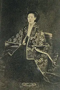 A few months before her birth, her father, Emperor Ninkō, died unexpectedly.[2] Born on 1 August 1846, her official birth date was changed to 10 May because the actual birth date was a bad omen date, and a double bad omen with the death of her father a few months before.