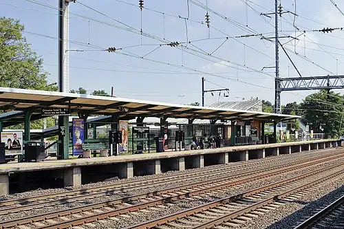 Princeton Junction station (signed as Princeton Junction at West Windsor) is a railroad station in Princeton Junction, a section of West Windsor Township, Mercer County, New Jersey. The station services both New Jersey Transit's Northeast Corridor Line and Princeton Branch services along with the Northeast Regional and Keystone Service of Amtrak. Other Amtrak services bypass the station. Princeton Junction station contains two high-level side platforms to service Northeast Corridor Line and Amtrak services, which use the four mainline tracks. There is also a single high-level side platform and a single track that services the Princeton Branch.