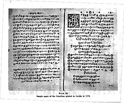 In 1577 the first of the Henriques’ five books, Doctrina Christam en Lingua Malauar Tamul (Thambiran Vanakkam) was printed in Goa. The book was the first book printed with Indian type. Although some scholars refuse to consider this as a historical fact, Graham Shaw seems convinced that it was printed. The second printed Tamil book was only 16 pages long, but a third Catechism of 127 pages, a Tamil translation of the popular Portuguese text by Marcos Jorge, was printed again with new type in Cochin on November 14, 1579. Three Catechisms were printed with three sets of type, at three different locations on the west coast over the following three years. Henriques’ two other books printed at Punnaikayal were:
