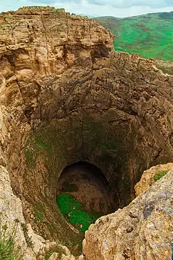 The Prison of Solomon (Persian: زندان سلیمان, romanized: Zendān-e Soleymān) is a hollow cone shaped hill in West Azerbaijan province, Iran. There is an 80 meters deep pit in the middle of the hill, and the entrance to the pit is roughly 65 meters in diameter.[1][2]