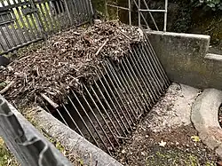A 5.7 km pathway (officially designated the "Prittle Brook Greenway" in 2010) enables walkers and cyclists to follow the section of the Brook from Belfairs, past Southend University Hospital to Roots Hall, effectively providing a route from Leigh into Southend which avoids the main roads.[9] This pathway, built in the 1940s, follows the Prittle Brook as it passes under several roads; the bridge which leads to Our Lady of Lourdes School in Manchester Drive runs directly over the Brook. This part of the Brook's route has been urbanised since the 1930s, and the banks have been concreted east of the Belfairs Wood area. As a consequence, the velocity of the brook has greatly increased, a phenomenon particularly noticeable during and after heavy rain (see below).[10]