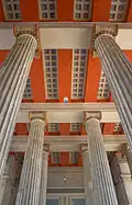 Each of the two towers of the gate is a powerful block with a large portal and an open room upstairs. The two portals of the towers were used for freight transport. The monumental gate in the middle of the Propylaea was reserved for riders and city cars. The ceilings of the towers were coffered.