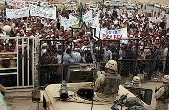 - ^ "Protests continue after week of war". BBC. March 27, 2003. Archived from the original on May 23, 2004. Retrieved January 12, 2007.