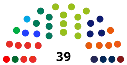 Since the 2023 provincial elections, the distribution of seats of the Provincial Council of Zeeland has been as follows:[2]