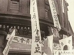 Kim Il Sung made a report on the political situation in North Korea and the issue of creating a provisional people's committee on the first day of the meeting on 8 February. This was followed on 9 February by the election of the 23 members of the Provisional People's Committee of North Korea, with Kim Il Sung as chairman, Kim Tu-bong as vice chairman and Kang Ryang-uk as secretary general.[2][3]