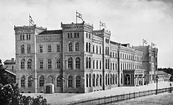 The Directorate of Prussian Railways in Bromberg (now Bydgoszcz) was established in 1849 at Neuer Markt (now Nowy Rynek) 8, before moving in 1853 to the main train station building. As its activity expanded with the development of the Prussian Eastern Railway network, and despite the addition of large wings to the station in 1861, the edifice was almost entirely devoted to administrative purposes. The old station proved to be too narrow, and some departments had to be transferred to nearby rented houses (11 houses were rented in 1880).[1]