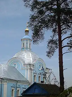 The village of Sloboda was first mentioned in 1724 in connection with the building of the church,[12] although the place had been inhabited long before that. Archeologists found ceramic products of the 4th or 3rd millennium BCE.[13] In the 4th-8th centuries, it was inhabited by the Krivichs.[13] People also lived in these lands at later times. Along the rivers and lakes (including Lake Sapsho), there was the trade route from the Varangians to the Greeks, and not so far away there was the second big city of the Principality of Smolensk called Verzhavsk (Вержавск).[14][15] In the 19th century, it was an outlying area with little economic activity.[16] It was the reason why Nikolay Przhevalsky bought an estate here in 1881. In the middle of the 20th century, Przhevalskoye-Sloboda became famous during World War II for its partisan defenders.[17] From September 1942 to September 1943, the front line ran through the village.[18] Almost all buildings were burnt. The partisans' staff was located in the partly ruined church.