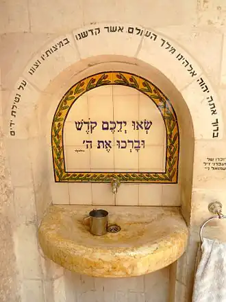 ![]() Verse 2 of the psalm, written above a sink used for ritual hand washing at the Beit El yeshiva, Old City, Jerusalem | |