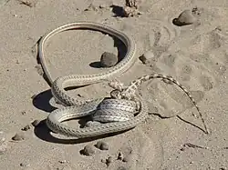 Psammophis lineolatus, commonly known as steppe ribbon racer or arrow snake, is a species of mildly venomous snake (not harmful to humans) in the family Lamprophiidae. It is located in northern and central Asia, from north western China, Mongolia, Russia, Kazakhstan, Azerbaijan, Kyrgyzstan, Tajikistan, Turkmenistan, Uzbekistan, Afghanistan, Iran, and Pakistan.[1] This snake has not been evaluated for conservation globally, but in Mongolia, it is categorized as Least Concern due to its large range and the fact that no decline in population has been detected.[2]