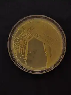 Pseudomonas viridiflava is a fluorescent, Gram-negative, soil bacterium that is pathogenic to plants.[1] It was originally isolated from the dwarf or runner bean, in Switzerland. Based on 16S rRNA analysis, P. viridiflava has been placed in the P. syringae group.[2] Following ribotypical analysis misidentified strains of Pseudomonas syringae pv. ribicola (which infects Ribes aureum) and Pseudomonas syringae pv. primulae (which infects Primula species) were incorporated into this species.[3] This pathogen causes bacterial blight of Kiwifruit.